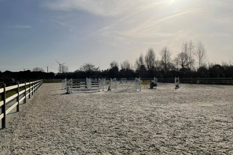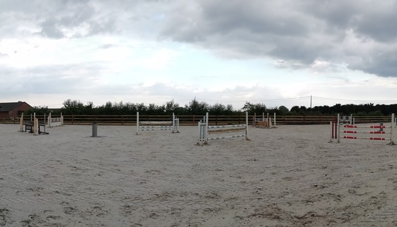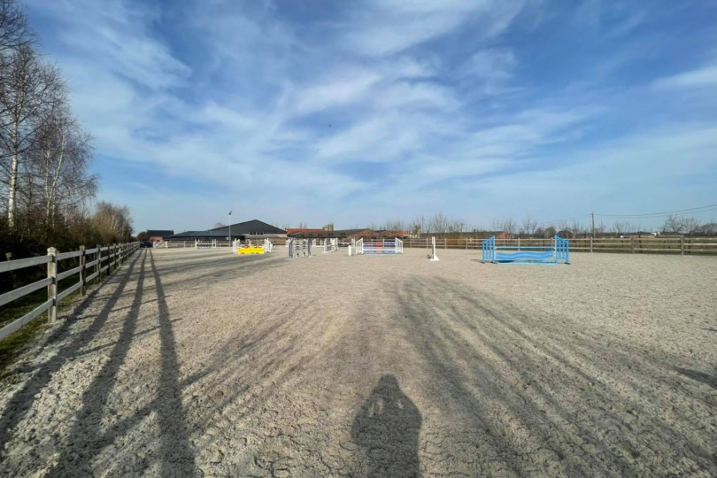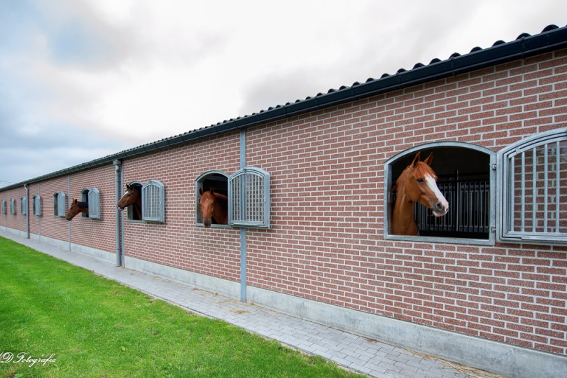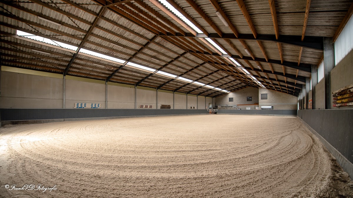 Wij beschikken over 30 ruime boxen, binnenpiste, buitenpiste met een uidagend spingparcours, overdekte stapmolen, hengstenpaddock, verschillende kleine winterpaddocks en weides.